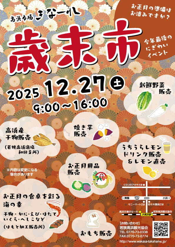 12月27日に高浜市場きなーれにて歳末市を開催します。