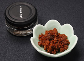 ふぐの卵巣を2年間塩漬けの後、福井の銘酒「梵」の酒粕で1年間付け込んでできあがる珍味、「福珠」。 そのまま酒のあてやご飯のお供として、クリームチーズと和えてパスタの味付けなど、お好みに合わせてお召し上がりください