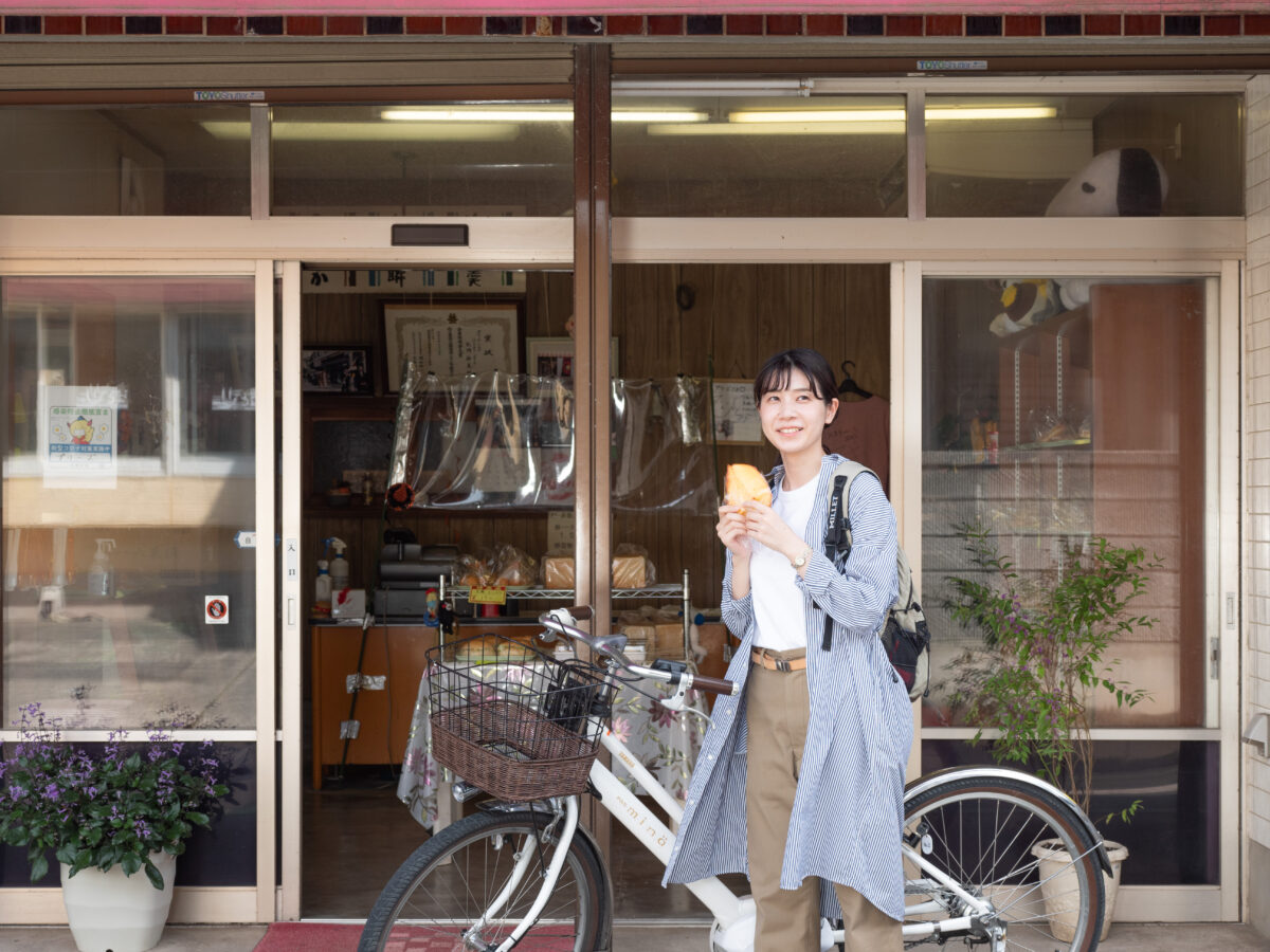 地元で愛されているパン屋さん「プリーズ」で軽食。
