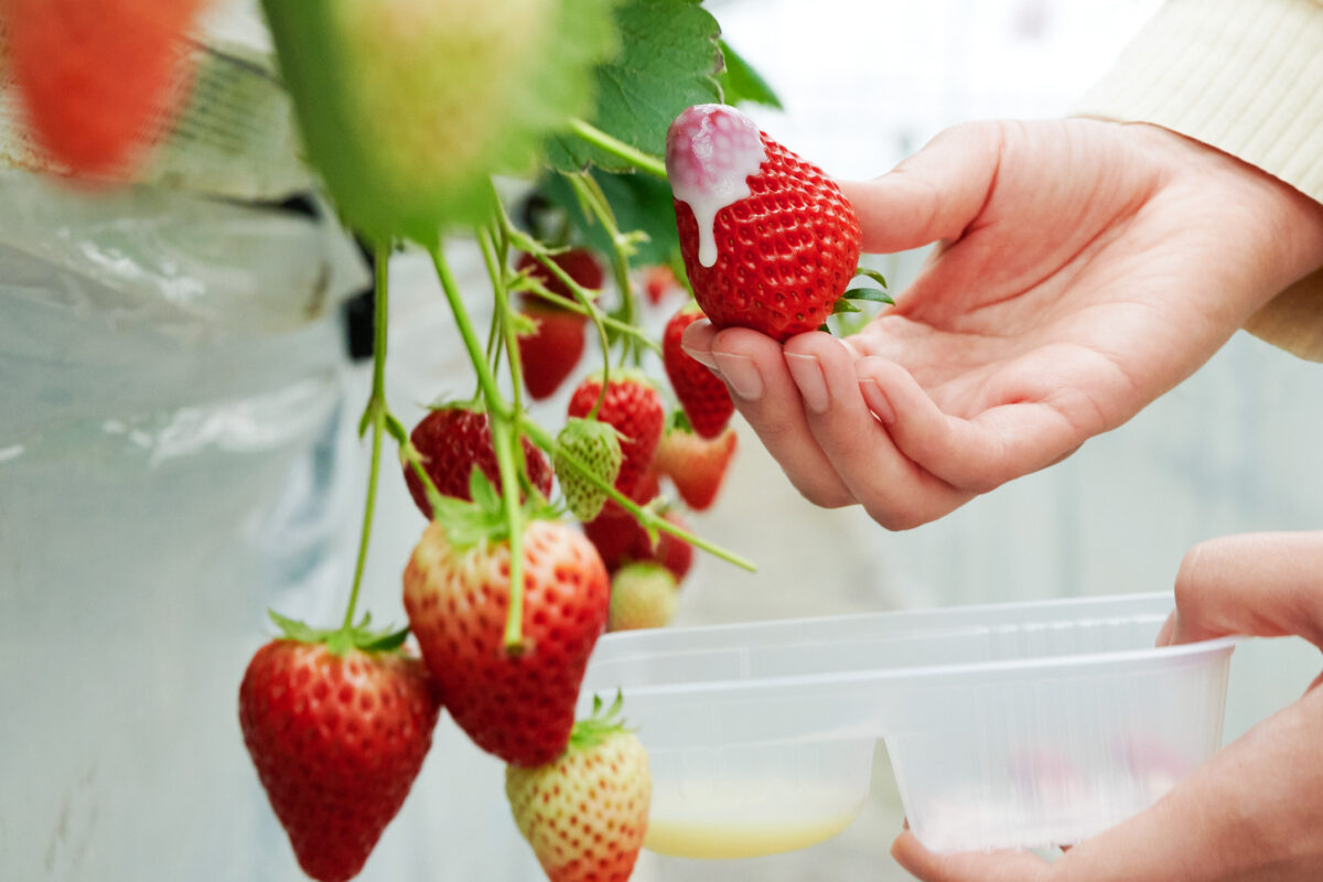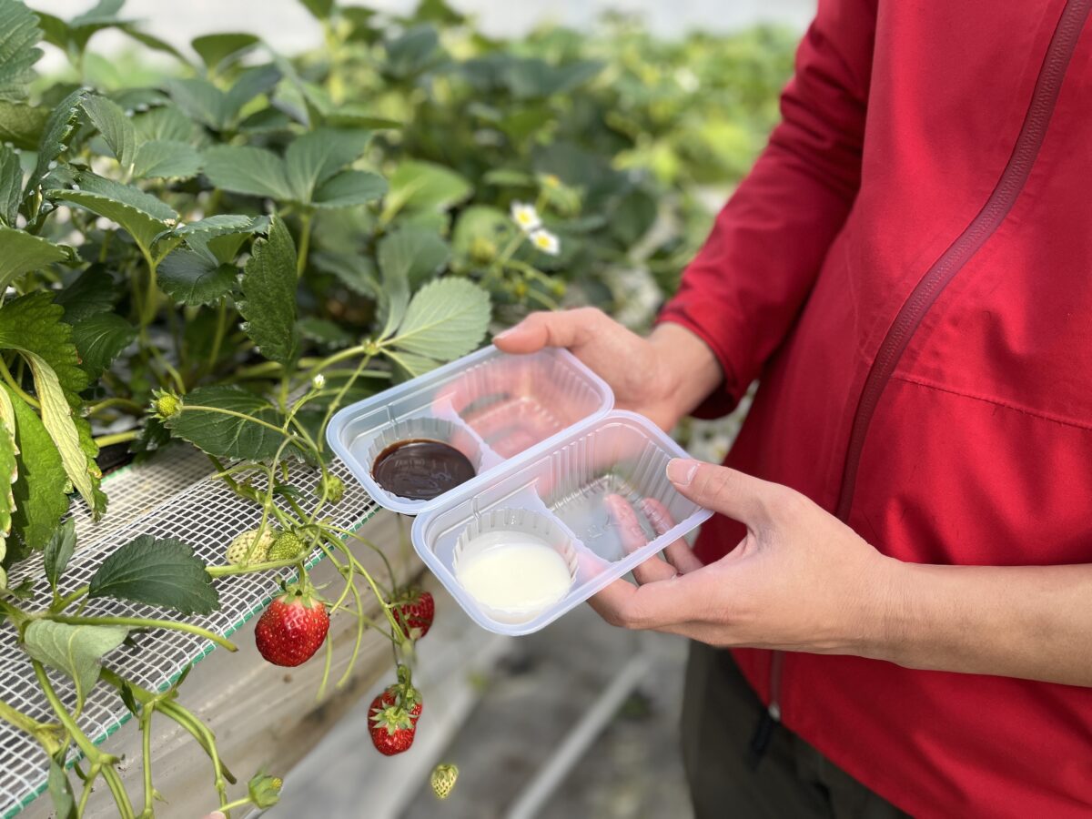3種類のイチゴを栽培しているので食べ比べができるいちご狩りスポット。練乳やチョコレートソースで味変もできるので色々な味を楽しめます!天候を気にしないでいちご狩りができるのも魅力!