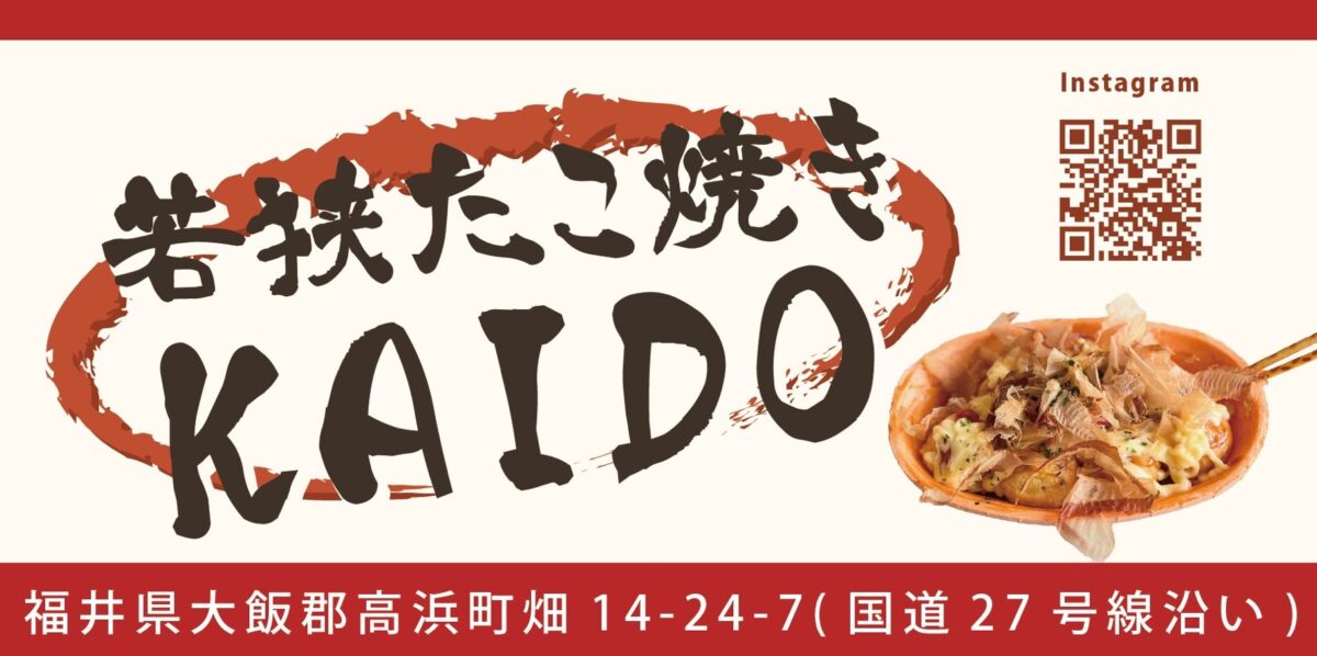若狭たこ焼きKAIDOは、2025年3月21日にオープン。国道27号線沿いに若宮海岸寄り立石交差点にあります。