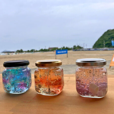 若狭和田ビーチなどで集めた貝殻やシーグラス、海洋プラスチックを使ったビーチクラフトや、ハギレや空きびんなど、ごみになってしまうものにアイデアを加えて生まれ変わらせる「アップサイクル」なものづくり体験ができます。
