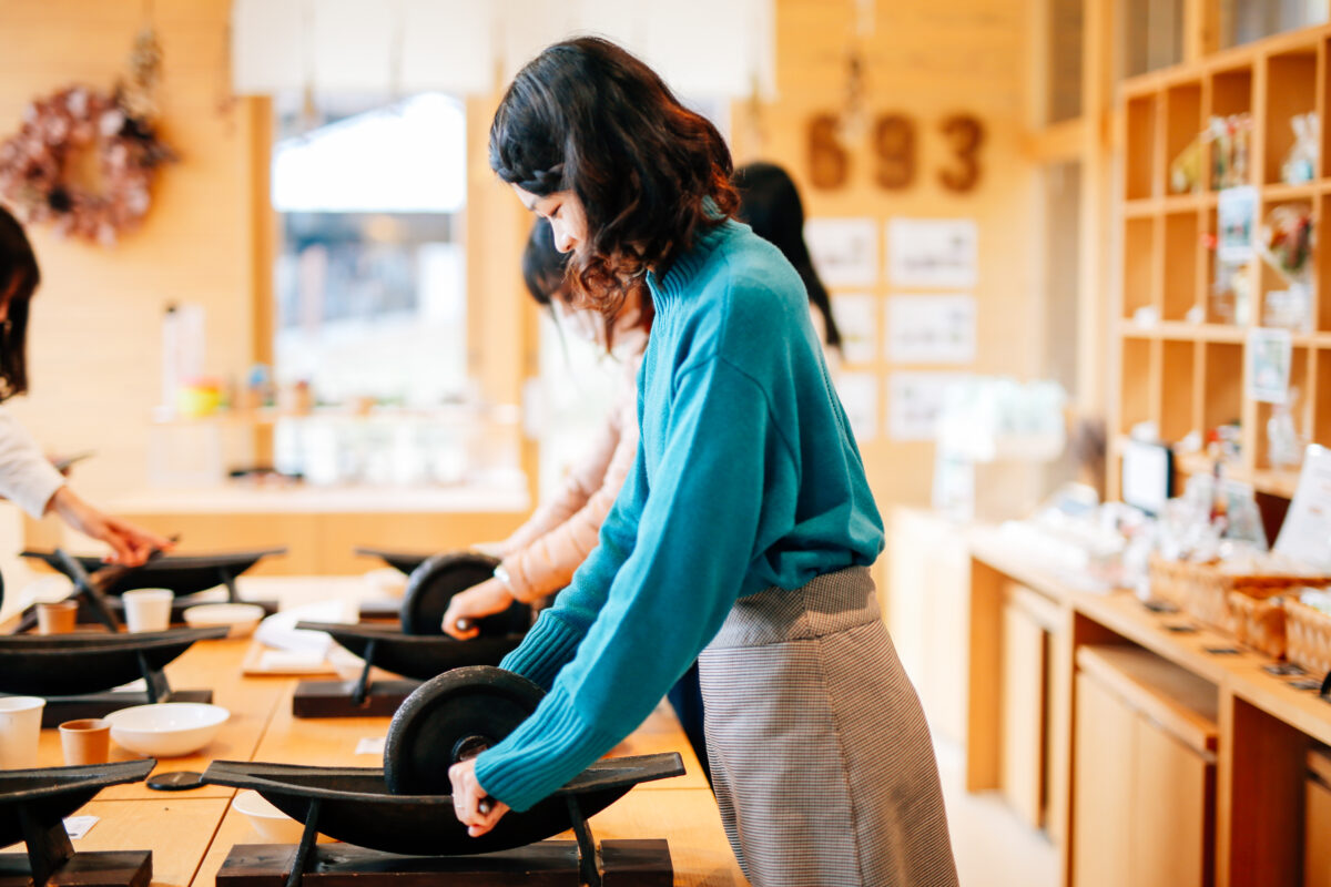伝統的器具「薬研(やげん)」を使って、約6種類の薬草を合わせたブレンド薬膳茶を作ることができます。 -